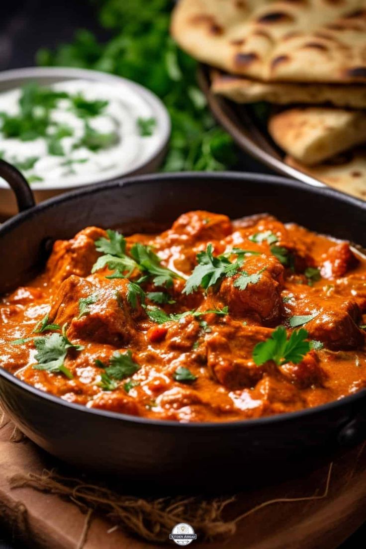 Treat yourself to our Chicken Butter Masala. Juicy chicken pieces simmered in a velvety, buttery tomato sauce. A rich and flavorful classic.
