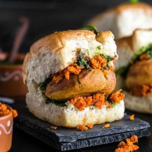 Bigger, bolder, and packed with flavor — this oversized vada pav comes with a spicy potato patty, chutneys, garlic masala, and soft pav buns. A satisfying street-style bite with extra punch.
