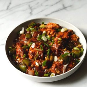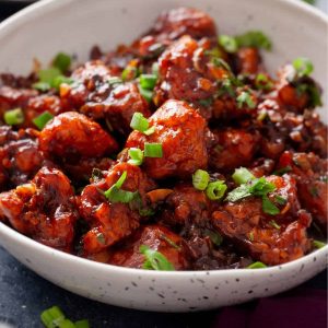 Crispy fried paneer cubes tossed in bold, fiery Schezwan sauce with garlic and chilies. A spicy, satisfying Indo-Chinese favorite.