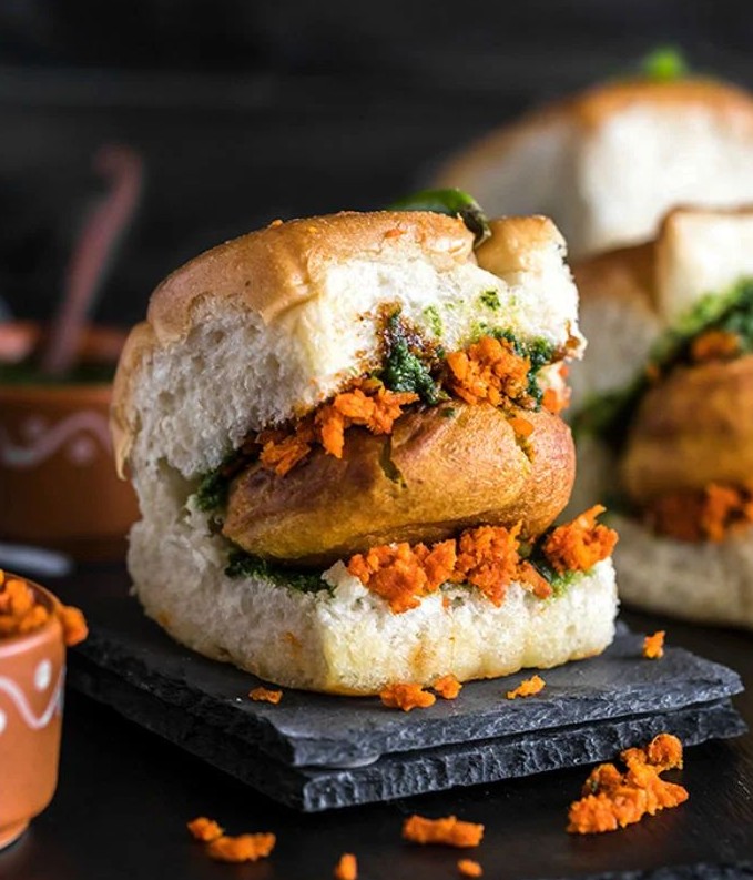 Enjoy spicy potato vadas tucked into soft pav buns, layered with chutneys and sprinkled with garlic masala. A bold and hearty snack straight from the streets of Mumbai.